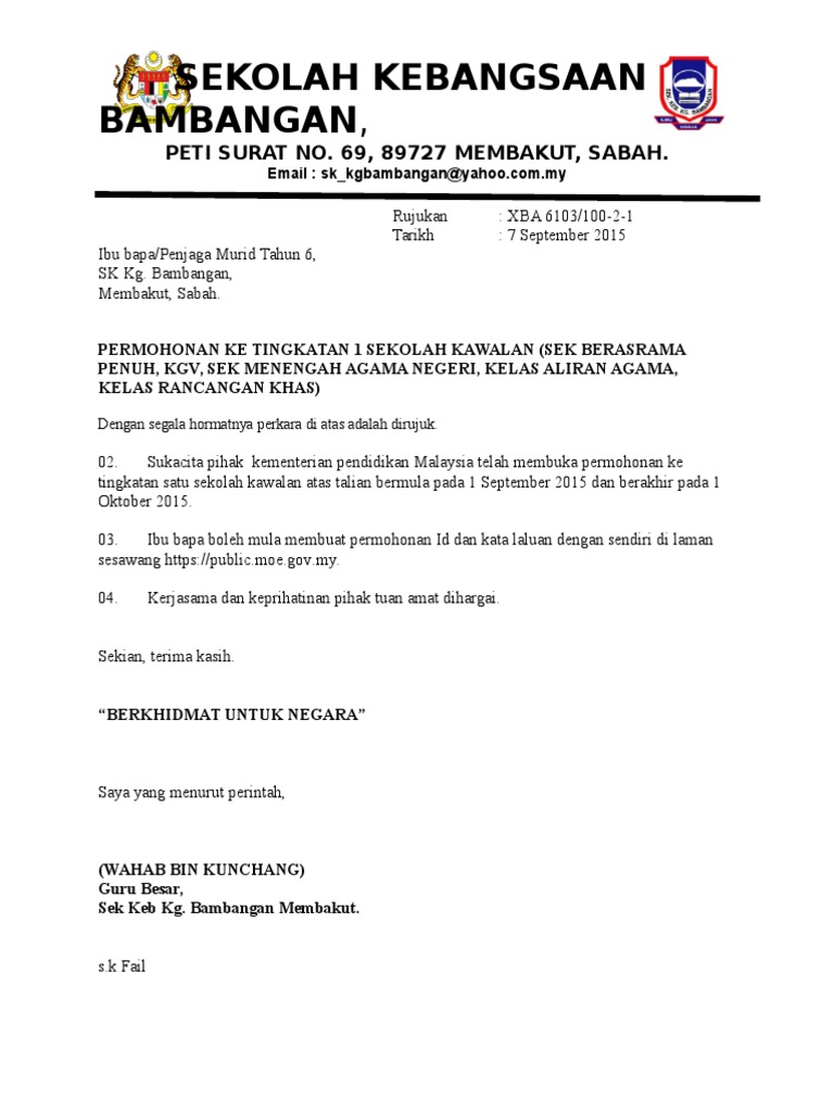 Surat Sekolah Kawalan Pdf Borang ini ditulis setiap hari persekolahan di dalam kelas guru kelas hendaklah menyediakannya dan diletakkan di dalam kelas mereka dalam bentuk buku. Contoh Surat Kebenaran membuka Akaun Simpanan i di Bank Rakyat beserta KADS1M Debit docx 359 KB 1443. Anda boleh memuat turun borang permohonan sekolah kawalan tingkatan 1 melalui Portal JPN Kelantan atau borang boleh.
